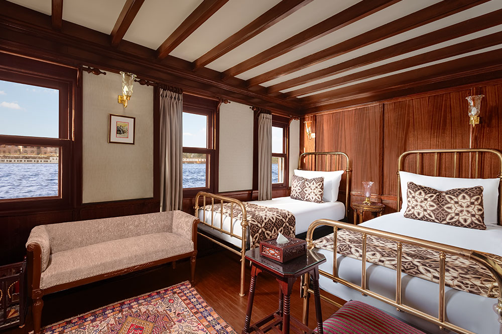 Step back in time and immerse yourself in the classic charm on Farouz El Nil l, ll or lll. With stunning panoramic windows in each of our six deluxe cabins of 16 m2, you will experience breathtaking views as you sail through the Nile, while spacious salons provide the perfect setting to relax and unwind. Every inch at Farouz El Nil tradition with a modern touch allowing you to create unforgettable memories on your journey through Egypt\\\'s timeless landscapes.
